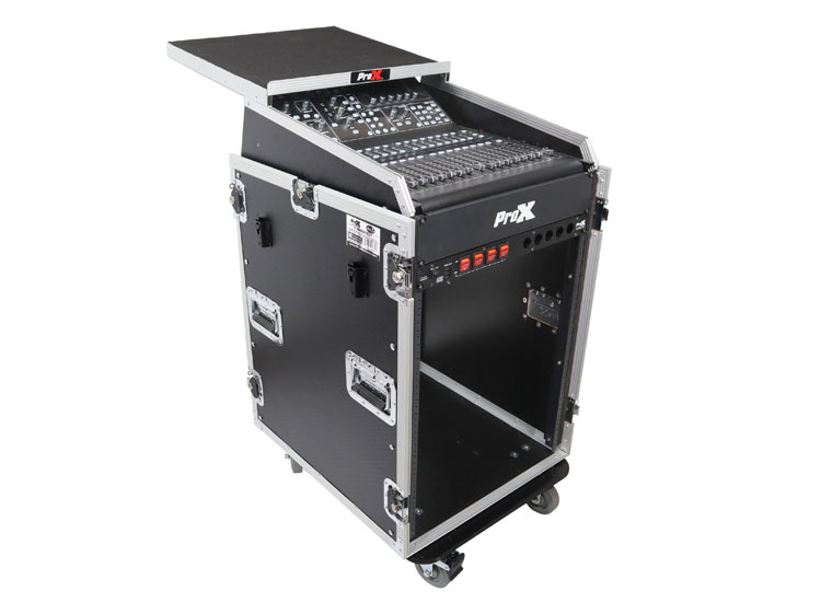 This ProX T-16MRSS13ULT Universal 19 Rack-mount Mixer with 13U Top and 16U Front with 2 Side Work Tables has all the best features you are looking for in a world-class flight case: strength, durability, and reliability with flexible options and sizes for different applications.