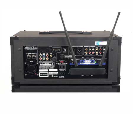 The system is a compact two-piece system with a powerful 200W 6-speaker stereo system that sets up in seconds. Hosting pro-level features such as a 4 channel mic/line mixer with DSP Reverb, and Hiss Filtering, you can count on your sound being top-notch. The SD recorder/player is a perfect tool for singers and musicians who want to record practice with band members, or play along with the recordings.