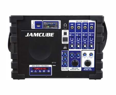 The JamCube is lightweight, full-featured, and with its adjustable shoulder strap, super easy to transport. The system is built around a four-channel mixer that can accommodate both microphones & instruments. Its built-in media player will play just about every kind of disc out there, including CD, MP3, DVD, CDG, and Photo-CD. If you prefer to tote your media on a portable storage device, the onboard USB port and SD card slot can access your files. It's the dream machine for program directors, traveling pastors & aerobic instructors. So take along the JamCube on your next trip and fill the room with some kicking sounds.