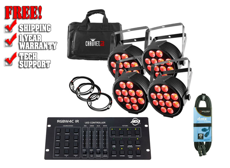 - Includes 4 SlimPAR Q12 USB wash lights, 3 five-foot DMX cables and a custom Gear bag